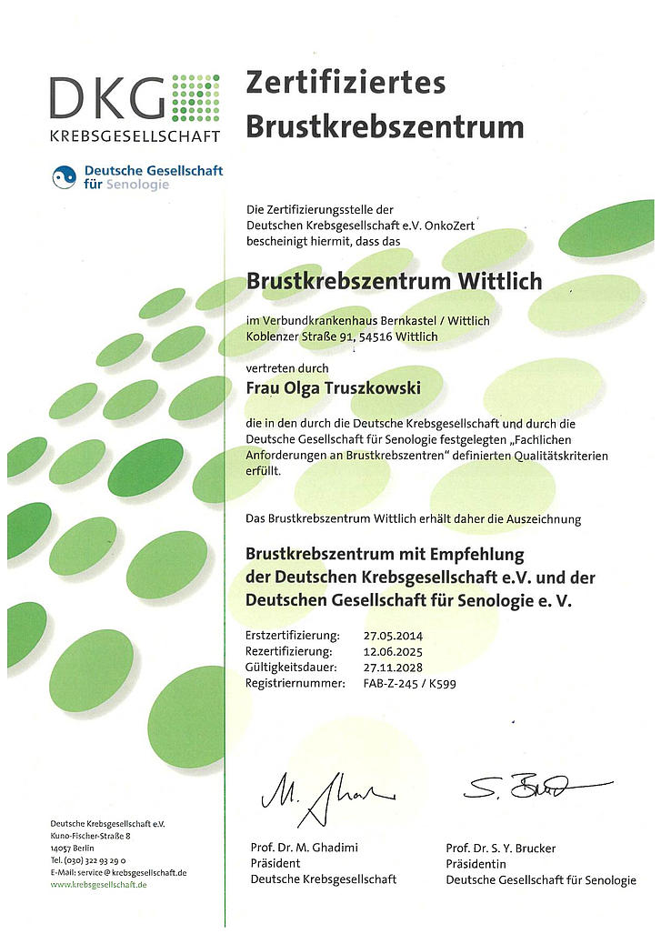Mit dem Ziel der umfassenden und raschen Abklärung und Behandlung der Brusterkrankung werden Ihnen vom Team des Brustzentrums Wittlich folgende Leistungen angeboten: