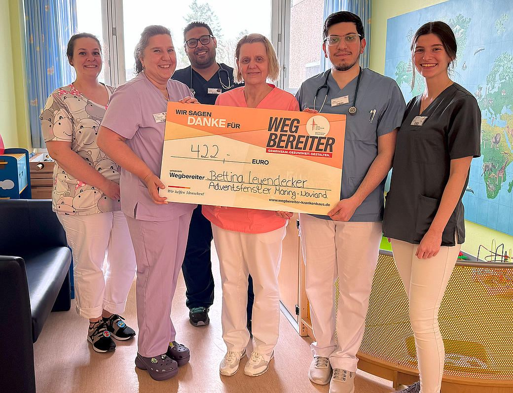Januar 2026 - Die Abteilung für Kinder- und Jugendmedizin des Verbundkrankenhauses durfte sich über eine Spende in Höhe von 422 Euro freuen. Der Betrag wurde im vergangenen Dezember im Rahmen der Adventsfenster-Aktion in Maring-Noviand, welches durch Bettina Leyendecker organisiert wurde, gesammelt. Das Verbundkrankenhaus bedankt sich herzlich bei Frau Leyendecker für dieses großartige Engagement.