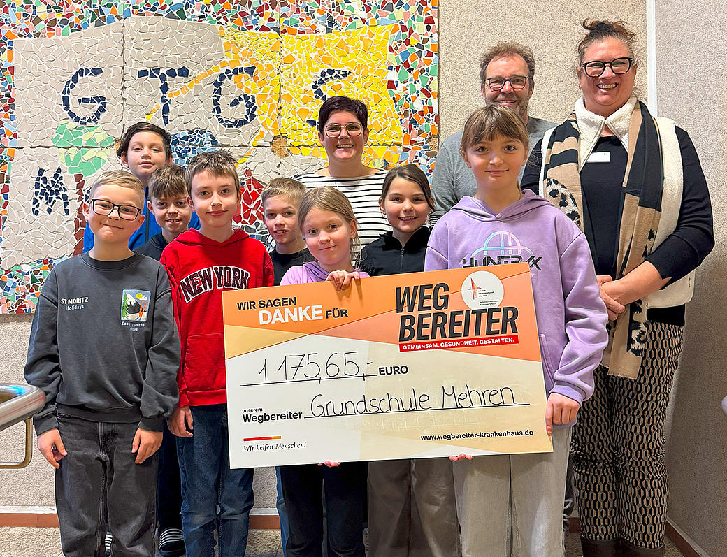 Januar 2026 - Die Abteilung für Kinder- und Jugendmedizin des Verbundkrankenhauses Bernkastel/Wittlich durfte sich über eine großzügige Spende der Grundschule Mehren freuen. Beim „Lebenslauf 2025“ erliefen die Kinder gemeinsam mit Unterstützung von Familie, Freunden und Verwandten eine beeindruckende Spendensumme von 1.175,65 Euro. Vielen Dank für diese wertvolle Unterstützung!