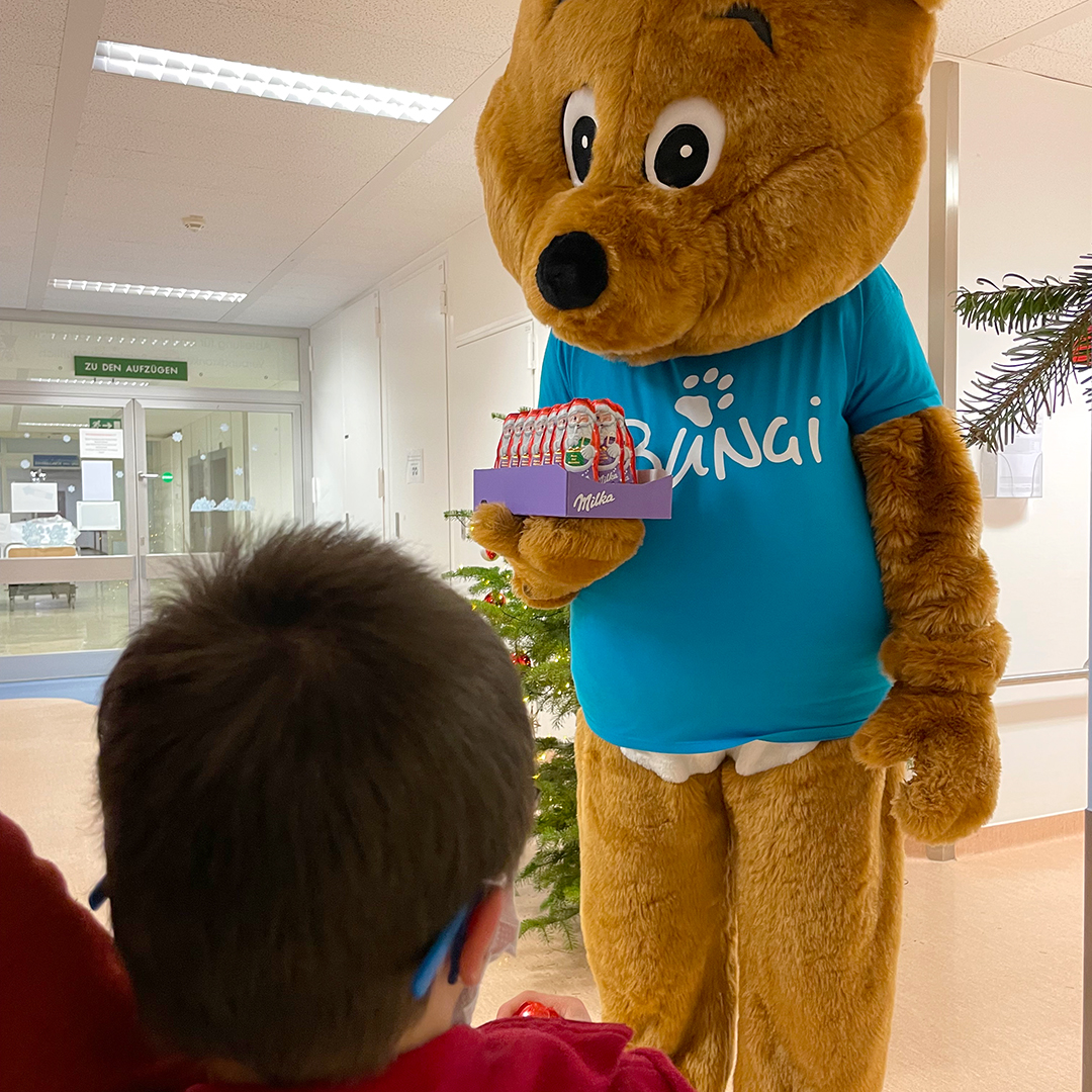 BungiBär, das Maskottchen des Shoppingcenters BUNGERT, hat der Abteilung für Kinder- und Jugendmedizin des St. Elisabeth Krankenhauses in Wittlich in der Vorweihnachtszeit einen Besuch abgestattet. Zur Freude der kleinen Patienten brachte er als großzügige Spende auch noch Schoko-Weihnachtsmänner mit und begeisterte damit sowohl die Kinder als auch das Pflegeteam. Wir bedanken uns ganz herzlich bei der Firma BUNGERT für diese tolle Aktion.