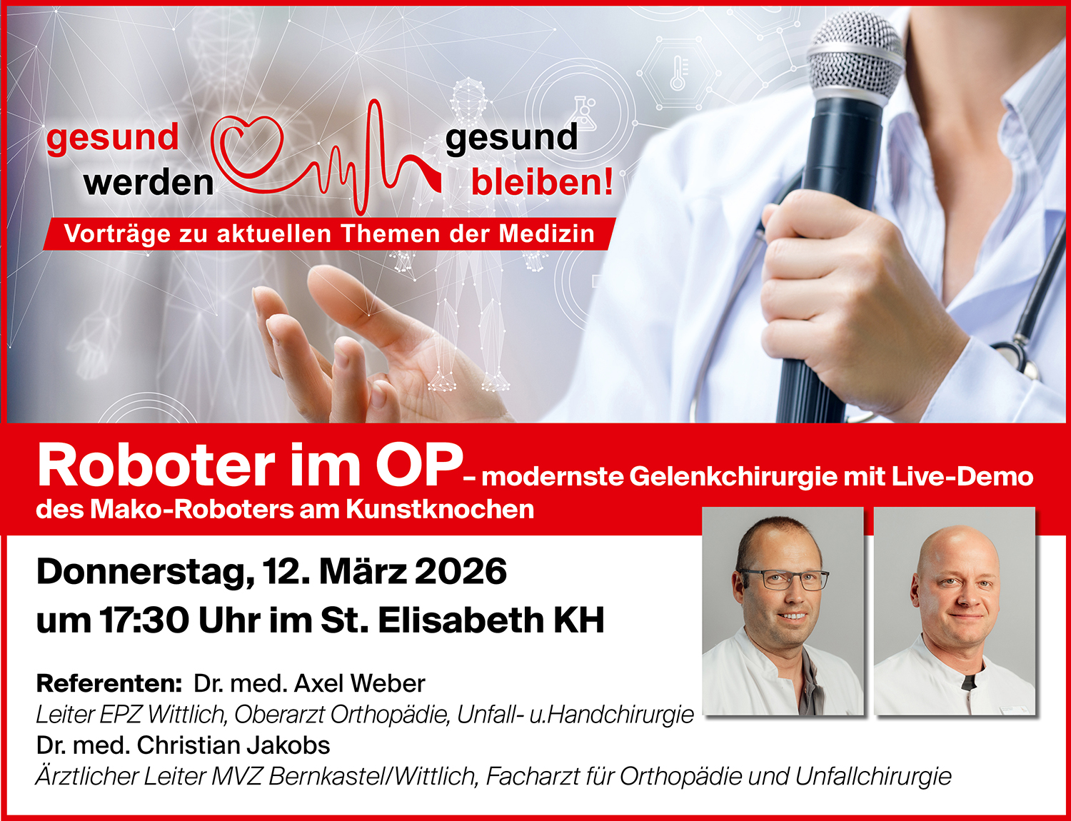In unserem EndoProthetikZentrum der Maximalversorgung (EPZ max) werden Hüft-, Knie- und Schlittenoperationen u.a. mit dem Mako-Roboter durchgeführt. Im Impulsvortrag wird erläutert, wie diese Technik die Planung und Durchführung der Eingriffe optimal unterstützt.